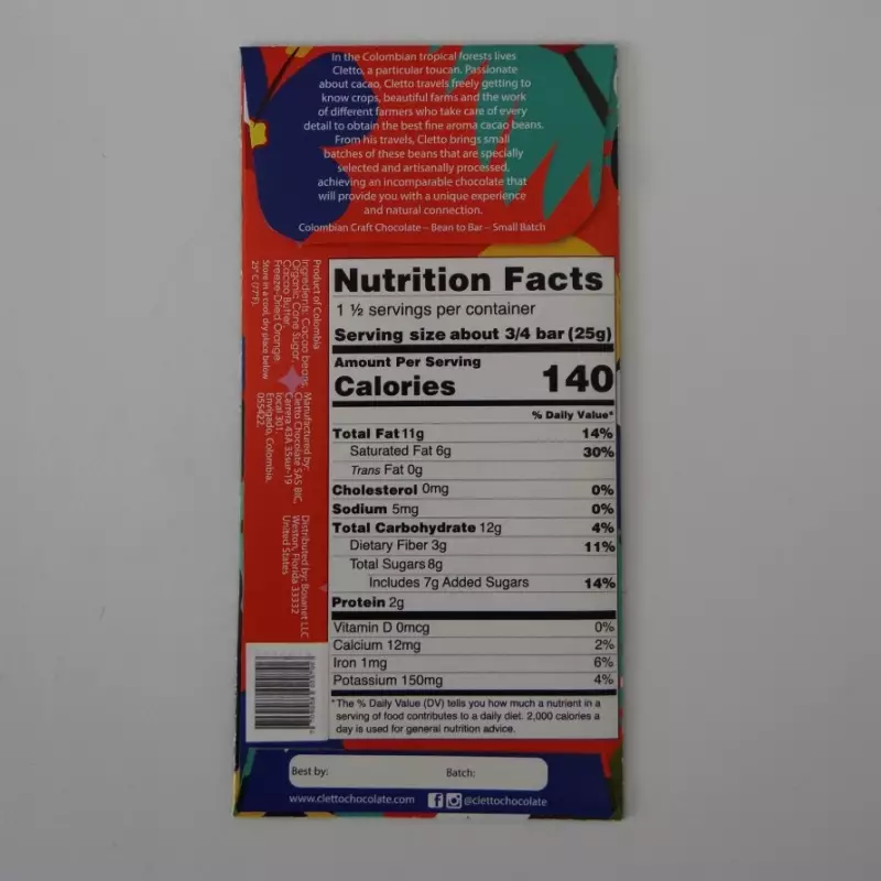 Cletto Chocolate is a company based in Envigado, Colombia. Since 2018, it has partnered with a group of cacao farms located in Antioquia. Through a Bean-to-Bar process, selected cacao beans are roasted and refined to produce high-quality chocolate. Cletto Chocolate's mission is to promote social and economic development for our growers and develop environmentally friendly packaging and processing alternatives.