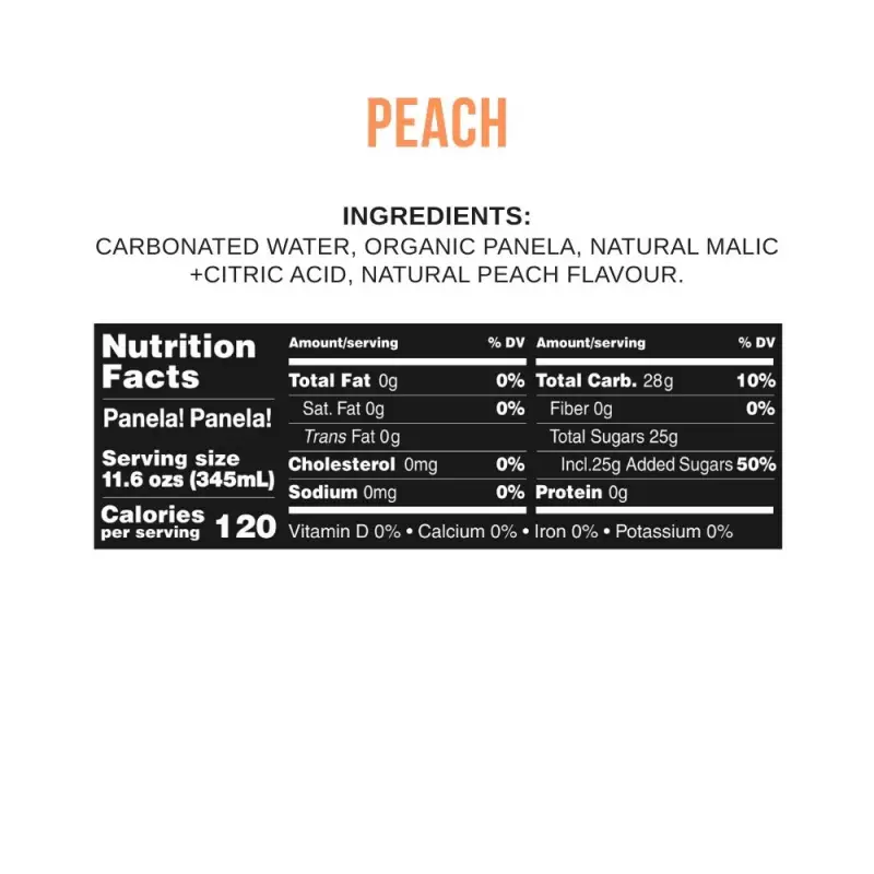 Início > Beverages > Carbonated > Panela!Panela! Sparkling Superdrink, Peach - 12 fl oz. No Refined Sugar, Organic, Vegan, Kosher